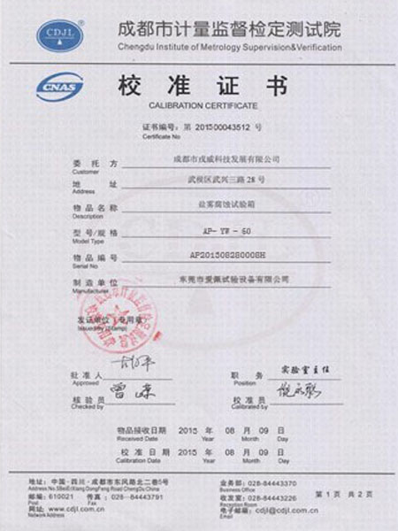 鹽霧箱校準證書
